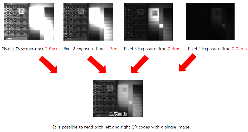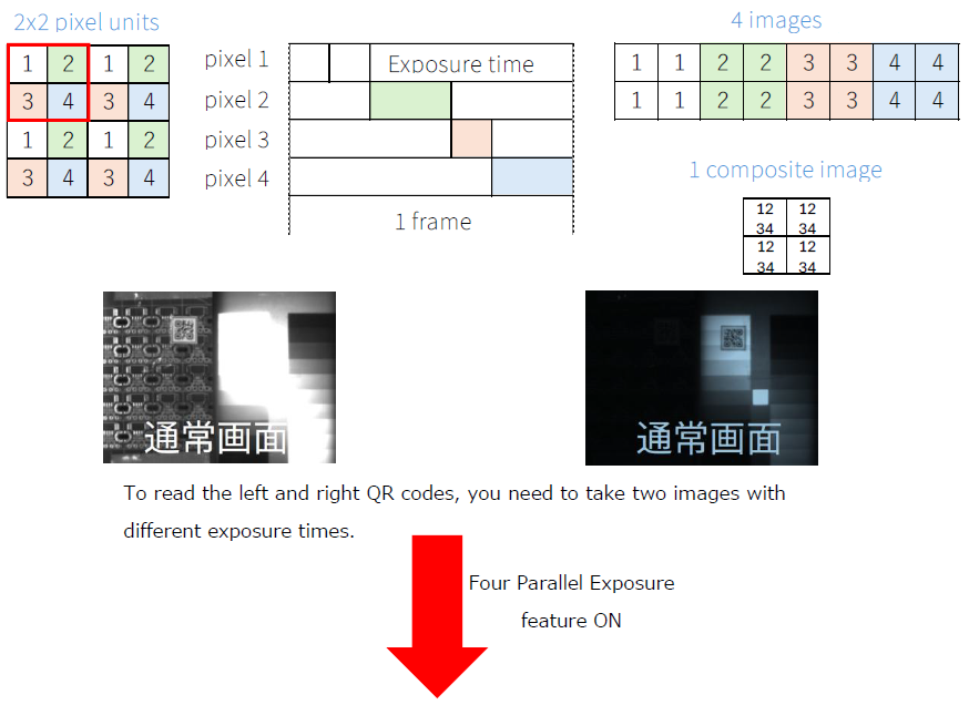 Shutter timing and exposure time can be set independently for each 2×2 (4-pixel) unit.